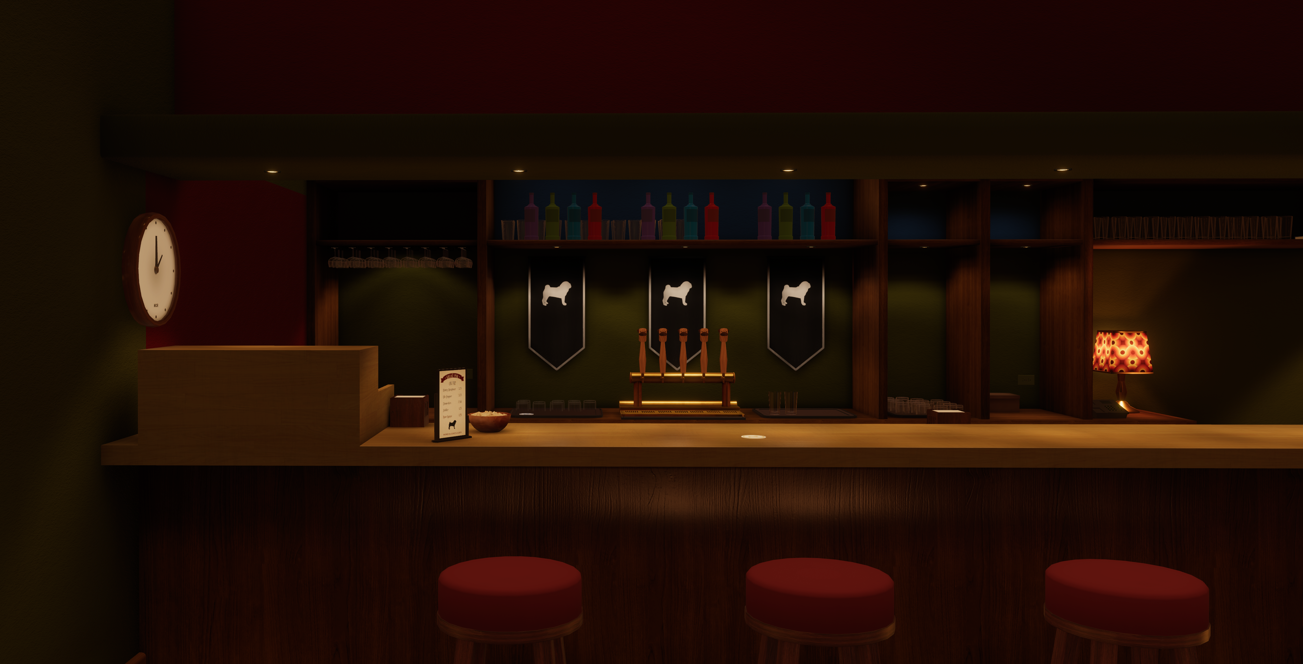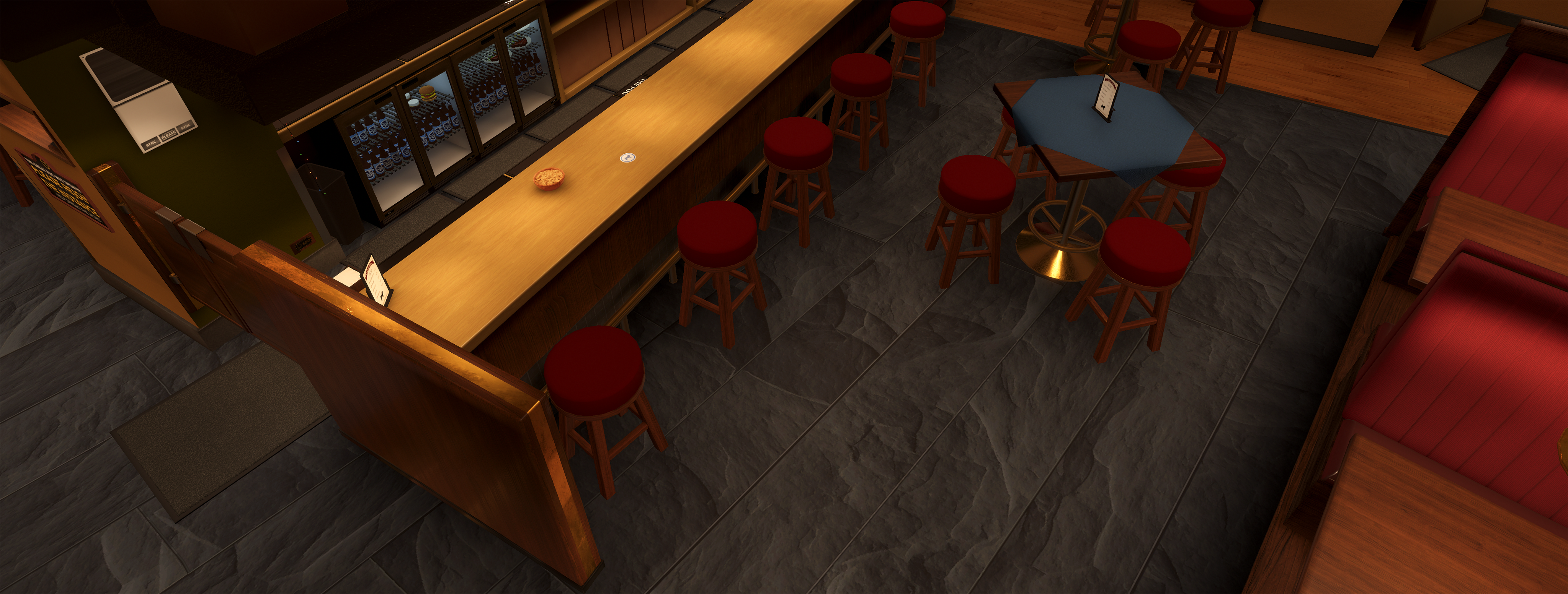 Improved the geometry behind the corner booth in the main bar area